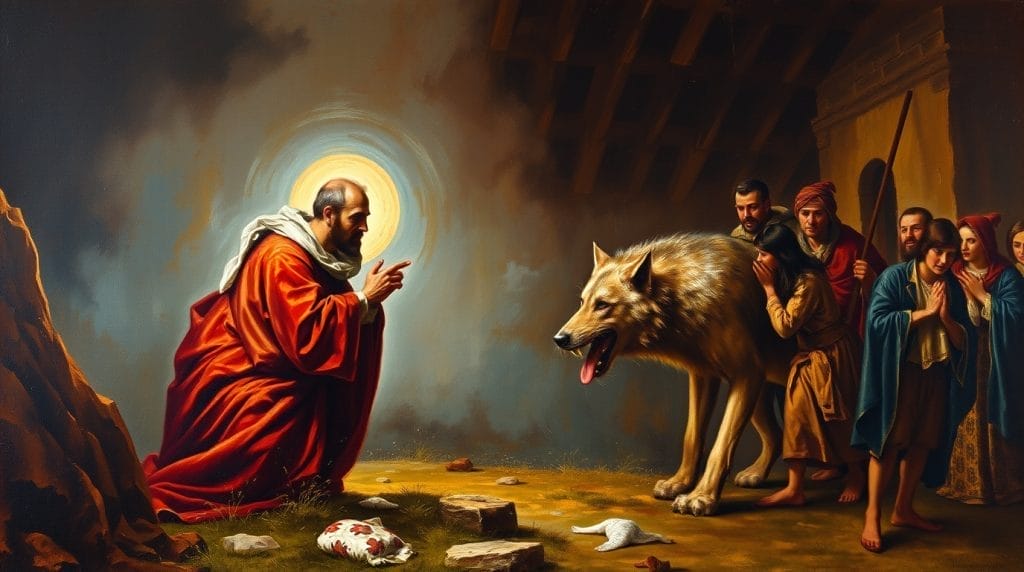 Perhaps one of the most famous stories is that involving the fierce Wolf of Gubbio, a terrifying creature terrorizing villagers until they sought help from Francis himself. Fearlessly approaching this fearsome beast armed only with faith—and perhaps some bread—Francis spoke gently yet firmly: “Brother Wolf,” he said calmly yet authoritatively; “I ask you on behalf God’s name: cease harming these people.” Miraculously pacified by these words alone (and maybe some bread), peace was forged between wolf & townspeople alike—demonstrating harmony possible even amidst fearsome adversaries when guided by grace & understanding rather than violence alone.